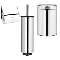 סט לשירותים, נתלה מבריק Brabantia: פח נתלה 3 ליטר NewIcon + מברשת אסלה עם אפשרות תלייה + מתקן קיר לנייר טואלט ברבנטיה + משלוח חינם + הנחה 10% לנרשמים לניוזלטר