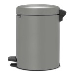 פח אשפה פדל אפור בטון מינרלי, 5 ליטר - באיכות ויופי אייקוני, מנגנון פדל עם סגירה רכה