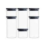 סט 6 מיכלי זכוכית 0.3 + 1.1 ליטר, מכסה אפור כהה Brabantia