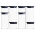 סט של 8 מיכלי זכוכית עגולים ברבנטיה 0.3, 1.1 ליטרחסכוני במקום - אפשרות לאחסון מודולרי אחד על השני.מיכלי זכוכית Borosilicate איכותית עם מכסה פלסטיק אפור כהה (ללא BPA) ואטימת סיליקון לשמירה על טריות.מושלם לאחסון עוגיות, פיצוחים, פסטה, קפסולות לקפה, תה, קמח, קטניות, חמוצים ועוד...בטוח לניקוי במדיח.10 שנות אחריות Brabantiaמידות המיכלים:4 מיכלי 0.3 ליטר, רוחב - 10.4 ס״מ , עומק - 10.4 ס״מ, גובה - 8.5 ס״מ (Y-298301)4 מיכלי 1.1 ליטר, רוחב - 10.4 ס״מ , עומק - 10.4 ס״מ, גובה - 20.2 ס״מ (Y-298264)