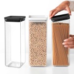 סט 3 מיכלי פלסטיק ברבנטיה בעיצוב ריבועי חסכוני במקום, אפשרות לאחסון מודולרי אחד על השני