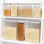 סט 7 מיכלי פלסטיק ברבנטיה בעיצוב ריבועי חסכוני במקום, אפשרות לאחסון מודולרי אחד על השני