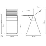 מידות המתלה סגור: גובה 98 ס״מ, רוחב 59 ס״מ, עומק 5 ס״מ