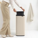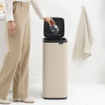 ברבנטיה ישירות מהיבואן: פח למטבח BO טאץ בז' עדין 30 ליטר Brabantia - גב שטוח, נצמד לקיר, פתיחה קלה וסגירה רכה. פח אשפה למטבח - איכות באחריות 10 שנים.