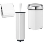 סט לשירותים, נתלה לבן Brabantia: פח טאץ נתלה 3 ליטר + מברשת אסלה עם אפשרות תלייה + מתקן קיר לנייר טואלט ברבנטיה + משלוח חינם + הנחה 10% לנרשמים לניוזלטר
