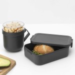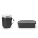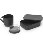 סט קופסת אוכל בינונית 1.1 ליטר + ספל למרק 600 מ״ל Make & Take ברבנטיה:ספל רב פעמי מפלסטיק עמיד ואיכותי - מאג אפור כהה, מכסה מתברג שקוף, ידית בצבע אפור כהההמכסה משמש מיכל מתברג לספל למרק - משאיר את התוספות הטעימות יבשות (קרוטונים,שקדי מרק וכו)פתח רחב - קל למילוי וניקויידית אחיזה נוחה לשתייה ומאפשרת ייבוש הפוך היגיינימידות: קיבולת - 0.6 ליטר, קוטר - 11 ס״מ, גובה - 13 ס״מ, עומק - 13 ס״מ (כולל הידית) קופסת אוכל בינונית 1.1 ליטר, אפור כהה Make & Take ברבנטיהמכסה עם קליפסים מובנים לסגירה קלה בקליקמקום ל-2 כריכים - הארוחה שלך, הבחירה שלך - בתאבון!Make & Take - קופסת אוכל רב פעמית Brabantia - כי ברור שחכם להביא אוכל מהבית לעבודה או לבית הספר - בריא יותר וזול יותר לארנק ולסביבההסט בטוח לשימוש במיקרו, במקפיא ובמדיחפלסטיק איכותי - ללא BPA100% ניתנת למיחזורמידות: קיבולת - 1.1 ליטר, רוחב - 13.5 ס״מ, אורך - 20 ס״מ, גובה - 5.5 ס״מ+ איכות ברבנטיה באחריות - 5 שנים+ ישירות מהיבואן+ התאמת מחיר נמוך + 5% הנחת BRASS Price Match - לפרטים נוספים+ עד 3 תשלומים בלי ריבית (בקנייה באשראי מעל 300 ש״ח)