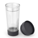 כוס מבודדת מפלסטיק עמיד ואיכותי - שקוף, מכסה אפור כהה