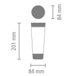 מידות: קיבולת - 360 מ״ל, קוטר - 8.4 ס״מ, גובה - 20.1 ס״מ, עומק - 8.4 ס״מ | משקל - 250 גרם