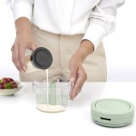 קוצץ מזון עם מקציף ידני ירוק ג'ייד +Tasty ברבנטיה.מעבד המזון כולל: מיכל 0.6 ליטר שקוף, קוצץ מזון עם 3 להבי נירוסטה חדים - לחיתוך מזון קשה ורך ומקציף פלסטיק לשמנת, ביצים וערבוב רטבים.ידית אחיזה ארגונומית.בסיס מונע החלקה ושריטות. מגן להבים לאחסון בטוח.איך זה עובד? הקוצץ והמקציף מסתובבים בקלות במשיכת הידית והתוצאות מהירות ואחידות.קל לניקוי - הלהבים + המיכל בטוחים לניקוי במדיח.לצימצום כתמים מומלץ להימנע משימוש בקוצץ למזונות ותבלינים עם צבעים חזקים ומכתימים (כמו סלק וכורכום).מידות וחומר עיקרי: רוחב 13.5 ס״מ | אורך 13.5 ס״מ | גובה 12 ס״מ | פלסטיק חזק ואיכותי, ללא BPA+ איכות באחריות 5 שנים (שנתיים על הלהבים) Brabantia+ ישירות מהיבואן+ התאמת מחיר נמוך + 5% הנחת BRASS Price Match - לפרטים נוספים+ עד 3 תשלומים בלי ריבית (בקנייה באשראי מעל 300 ש״ח)
