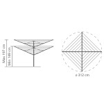 מידות - פתוח: קוטר 312 ס״מ, גובה מינימום / מקסימום לתלייה: גובה 149 -197 ס״מ