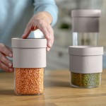 מיכל אחסון מזון יבש Flip מתרחב 850-600 מ״ל בינוני, שקוף + בז' Lekue לקואה: