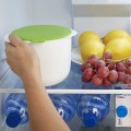 צבעוניות: קערה לבנה, מסננת ומכסה ירוקים.