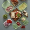 קופסאות סיליקון עם מכסה מחובר למקרר ולמקפיא Lekue לקואה - עיצוב מודרני וחסכוני במקום - כשהקופסאות בשימוש ניתן לאחסן מודולרית אחת על השנייה וכשריקות ניתנות לאחסון אחת בתוך השנייה.