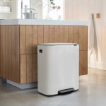 פח הפרדה BO פדל 30+30 ליטר, לבן Brabantia - פח מחולק יפה ויוקרתי - 60 ליטר של עיצוב יפיפה של פח מיחזור עם שני תאים נפרדים להפרדת אשפה אורגנית ומיחזור.