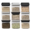 סט 9 מיכלי פלסטיק ברבנטיה בעיצוב ריבועי חסכוני במקום, אפשרות לאחסון מודולרי אחד על השנימיכלי פלסטיק שקוף, חזק במיוחד SAN, ללא BPAמכסה אפור כהה (5) ובהיר(4) אטימת סיליקון שומרת על האוכל טרי ליותר זמןבטוח לניקוי במדיח5 שנות אחריותמידות: מיכלי 0.7 ליטר, רוחב - 11 ס״מ , עומק - 11 ס״מ, גובה - 10.5 ס״מ (מק״ט Y-122446 +Y-122309)